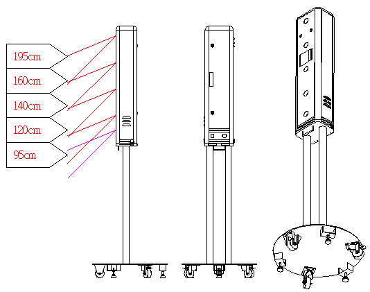 直立式MIN1-VT4系列產品//使用4組超高速偵測溫度鏡頭、紅&綠LED警示、閃光警爆器or音樂鈴、4”彩色觸控顯示幕、全自動AI溫度校正補償系統、℃&℉切換顯示、超溫度數設定、超溫記錄、人數統計、各式曲線圖、指針圖、手/自動環境設定、手/自動調整偵測鏡頭感度、Phase設定、、、等。